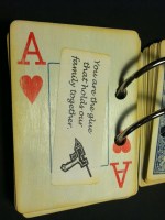 I’ve seen several versions of the deck of cards “52 Reasons I Love You” projects and loved the idea. I really wanted to make one for my husband but quickly realized that coming with 52 reasons might be a challenge. When I told my 11 year old daughter what I wanted to do even she wondered if I could come up with 52 reasons! It certainly isn’t that I don’t love my husband, but after over 25 years of marriage coming up with 52 romantic sentiments took a little bit of thought! I shared the idea with a friend and she decided to make a deck for her husband of 2 years and in 30 minutes she had a great list, I was still working on number 26! It turned out to be a great exercise in appreciation of him and all the things in my life that I depend on him for. I also thought back on fun things from our dating years and early marriage, suddenly I found that I had lots of reasons and could easily fill a deck of cards, whew what a relief.