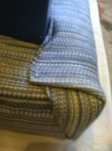 The corners are kind of like making a bed with hospital corners except I think I did mine backwards! I stapled all the way to the corner on one side then pulled the extra fabric at the corner into a point and folded it over. Trim away any excess bulky fabric then staple it down making a triangle. My photos are kind of blurry but hopefully helpful. Repeat on each corner and you are done!