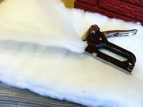 2 years later I pulled the old fabric off and the foam was still in perfect condition so I just needed fabric and batting (good thing because the foam was the most expensive part of the project.)