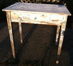This is somewhat unrelated but my hot water heater broke. I was stuck at home for several hours while waiting for a repair person, it was a beautiful Spring day, what could I do? I sanded the desk I’m refinishing for a bit and then I saw the table, what the heck why not paint it? The worst that could happen was another trip to the curb!
