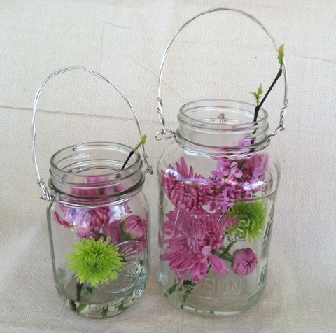 Now you can put some sand in the bottom and a votive candle, or water and flowers, or whatever you want. For $3 I made 3 jars and have enough wire left to make a few more. I need more jars – guess we’re having spaghetti for dinner this week!