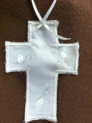 I tried to sew a fabric cross from leftovers from the veil I made for my niece. I thought I would attach it to a card and it would be a little keepsake. Unfortunately it really didn’t look like a cross when it was done!!